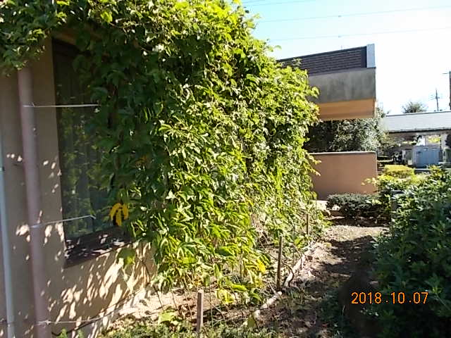 グリーンカーテン(パッションフルーツ)が成長しました