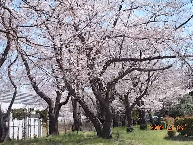 墓園の桜が満開となりました。